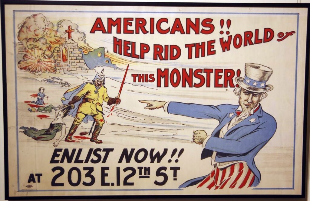 Propaganda: Posters, films, and press demonized the enemy, boosted morale, encouraged enlistment/bond purchases (e.g., U.S. “Uncle Sam” or anti-German atrocity stories from Belgium).
